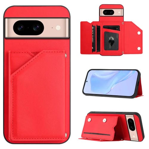 Funda para Teléfono Google Pixel 8A Skin Feel con 4 Ranuras para Tarjetas y Correa (Rojo)