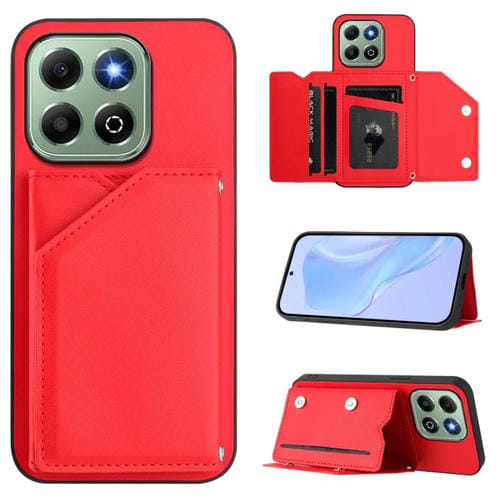 Funda para Teléfono Honor X6B Skin Feel con 4 Ranuras para Tarjetas y Correa (Rojo)