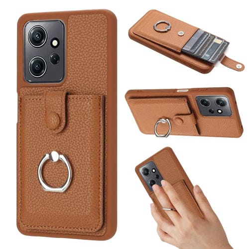 Funda para Teléfono con Diseño de Textura de Lichi y TaRJetero con Anillo para Redmi Note 12 4G (Marrón)