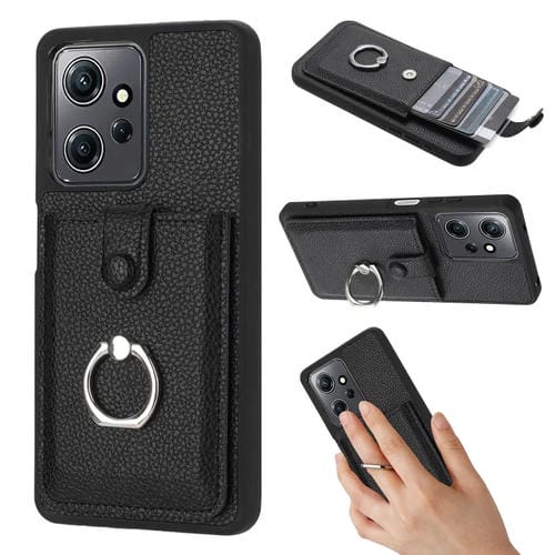 Funda para Teléfono con Diseño de Textura de Lichi y TaRJetero con Anillo para Redmi Note 12 4G (Negra)