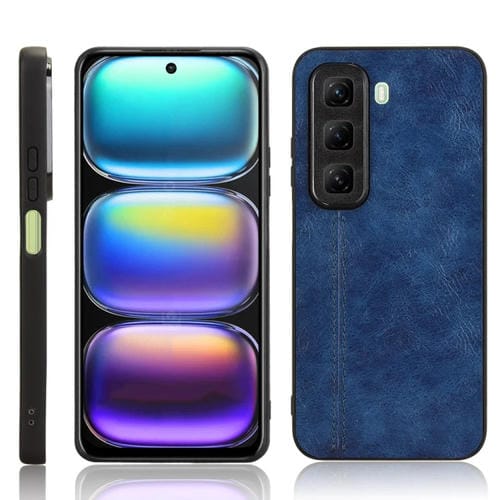 Funda para Teléfono Infinix Hot 50 5G Estampado de Vaca Costura Trasera (Azul)