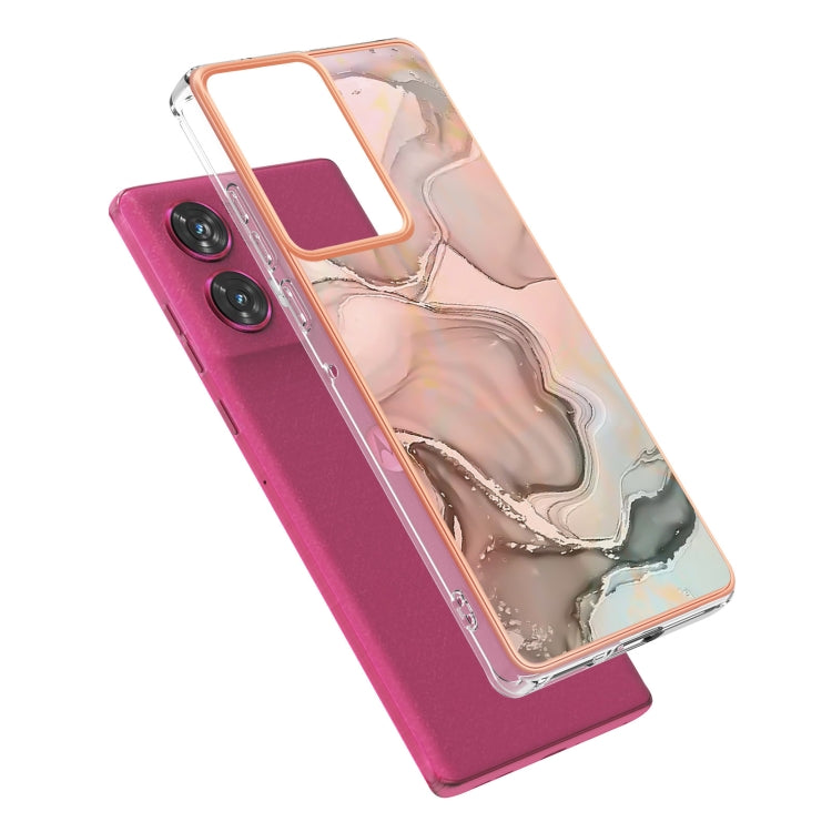 Funda para Teléfono Motorola Edge 50 Fusion con Imd Doble Cara y Galvanoplastia de Mármol (Oro Rosa)