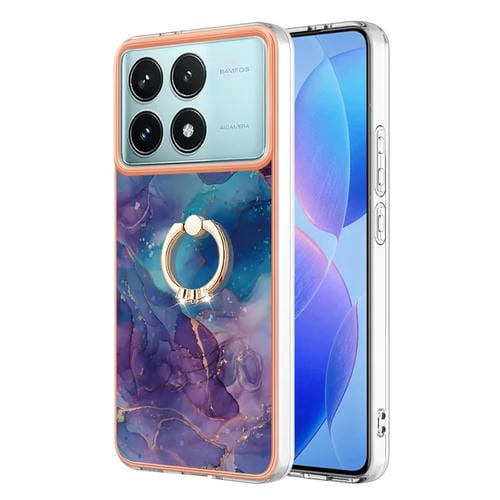 Funda para Teléfono con Imd de Doble Cara con Galvanoplastia de Mármol para Xiaomi Poco F6 Pro 5G con Anillo (Púrpura 016)
