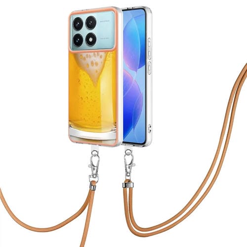 Funda para Teléfono con Imd de Doble Cara Galvanizada con Cordón para Xiaomi Poco F6 Pro 5G (Cerveza de Barril)