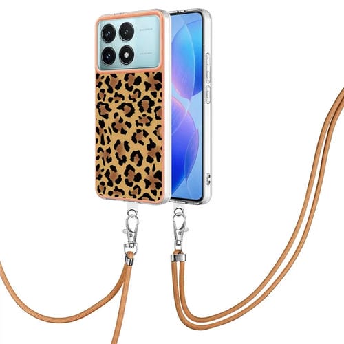 Funda para Teléfono con Imd de Doble Cara Galvanizada con Cordón para Xiaomi Poco F6 Pro 5G (Estampado de Leopardo)