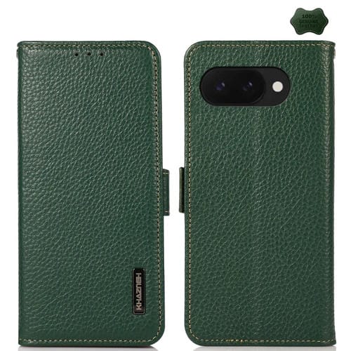 Funda para Teléfono Khazneh con Rfid Cuero Genuino e Imán Lateral para Google Pixel 9A (Verde)