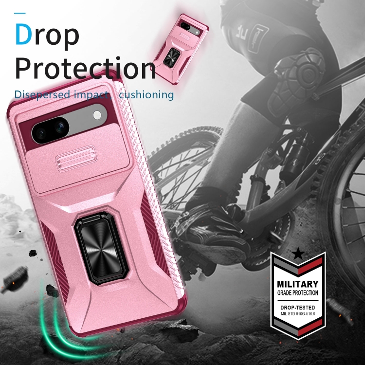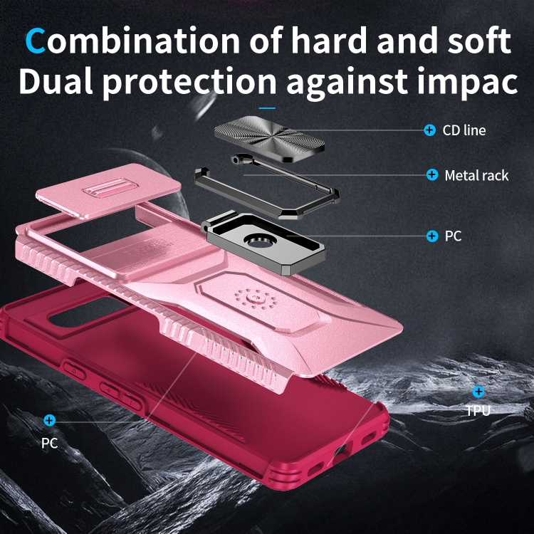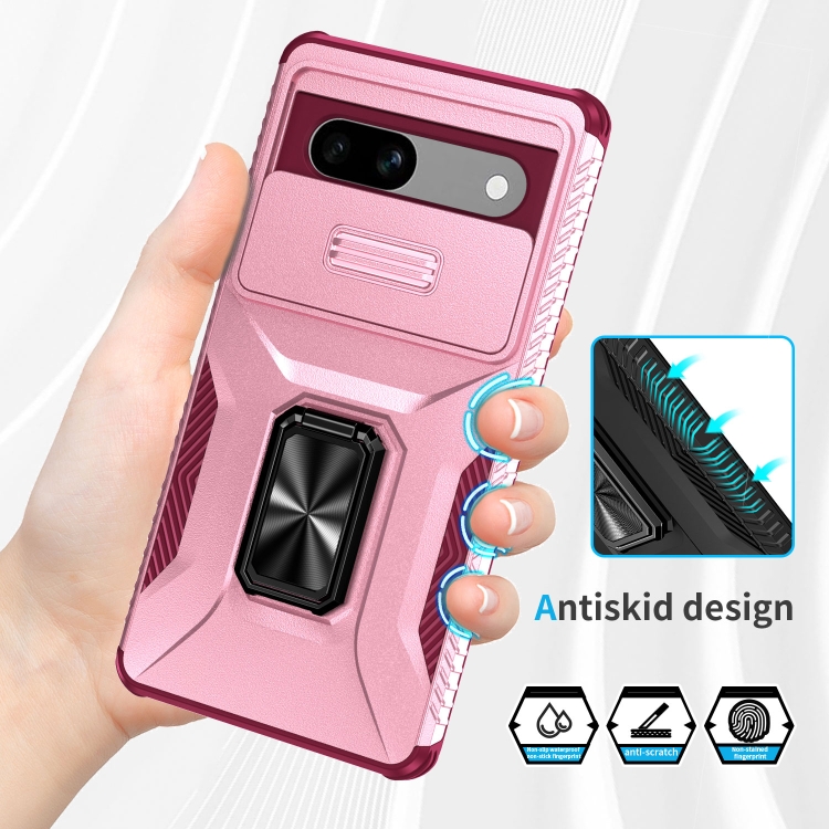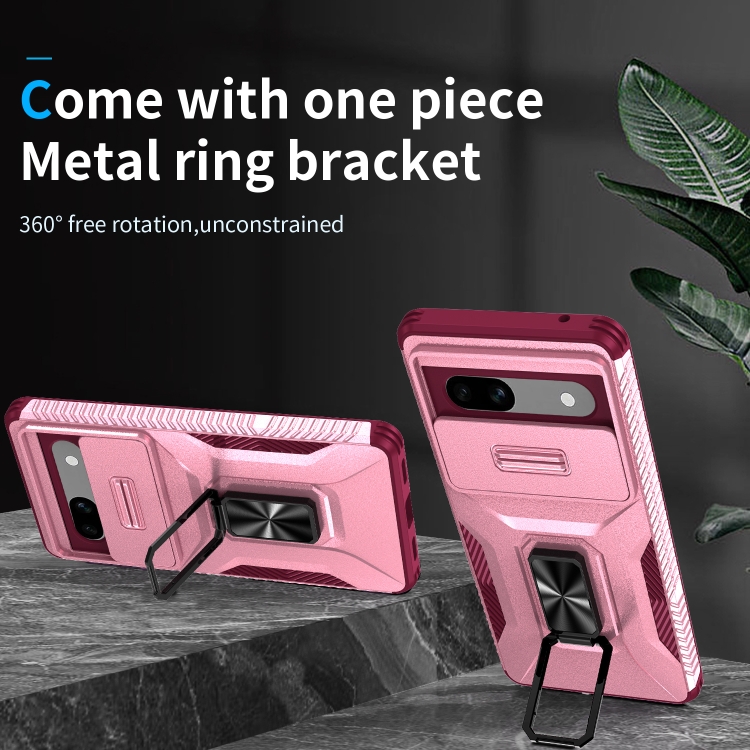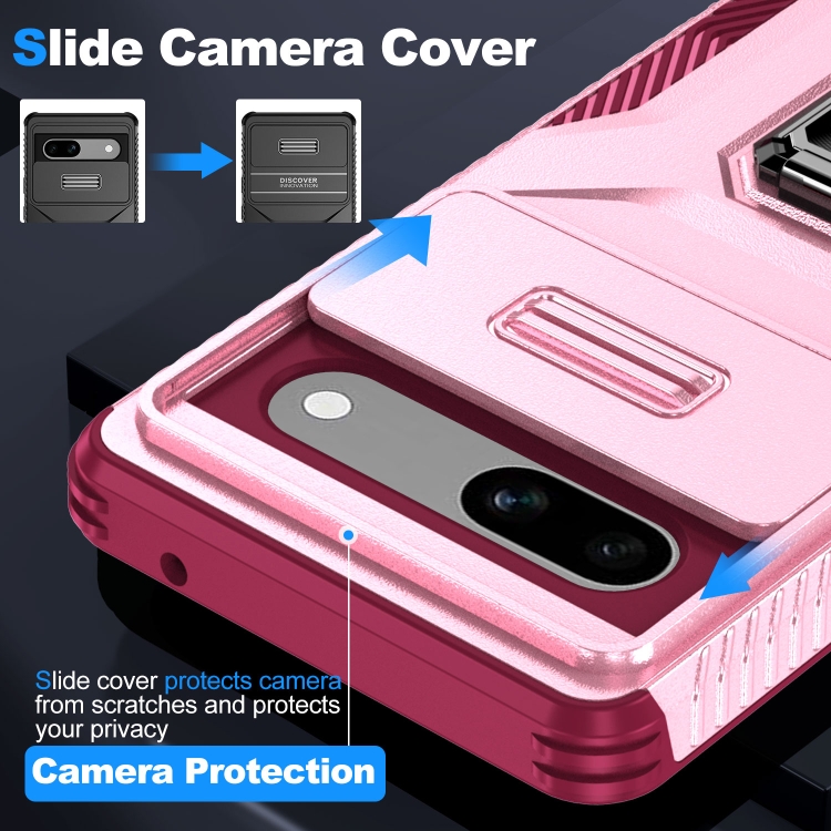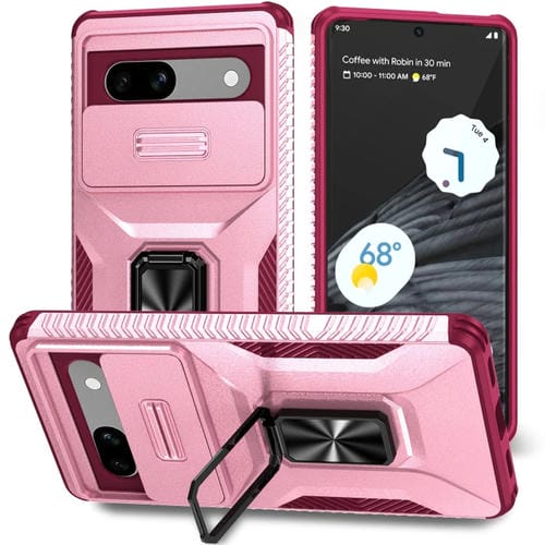 Funda para Teléfono Camshield con Soporte Deslizante para Google Pixel 7A (Rosa + Rojo Rosa)