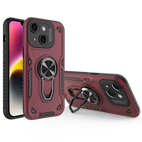 Funda para Teléfono iPhone 14 Plus TPU + PC Soporte Giratorio Metal (Rojo Oscuro)
