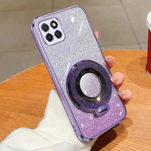 Funda TPU con Soporte Redondo y Purpurina Degradada para Honor Play 20 (Morado)