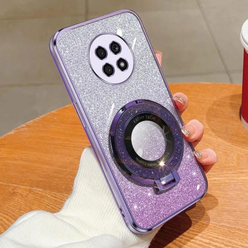 Funda para Teléfono Honor X20 TPU con Soporte Redondo y Purpurina Degradada (Morado)