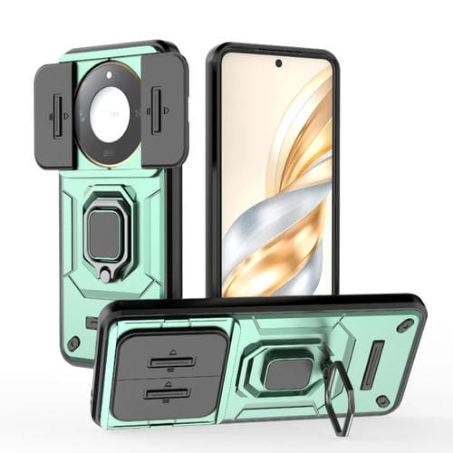 Funda para Honor X60 5G con Soporte y Carcasa Deslizante TPU y PC (Verde)