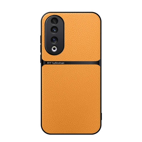 Funda para Honor 90 Pro con Tapa Magnética de Cuero de Lichi a Prueba de Golpes (Amarilla)