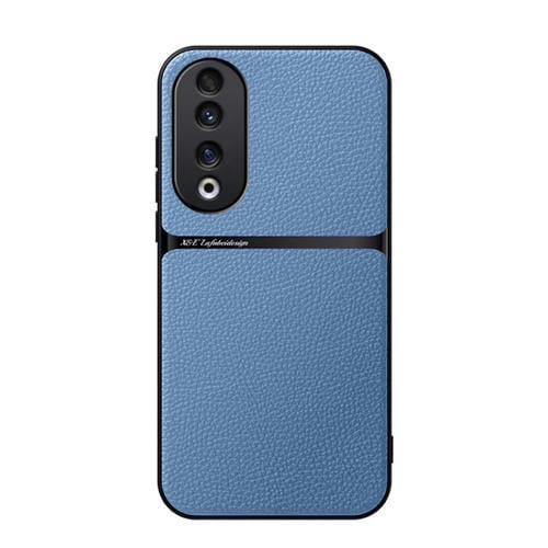 Funda para Teléfono Honor 90 Pro con Tapa Magnética de Cuero de Lichi a Prueba de Golpes (Azul)