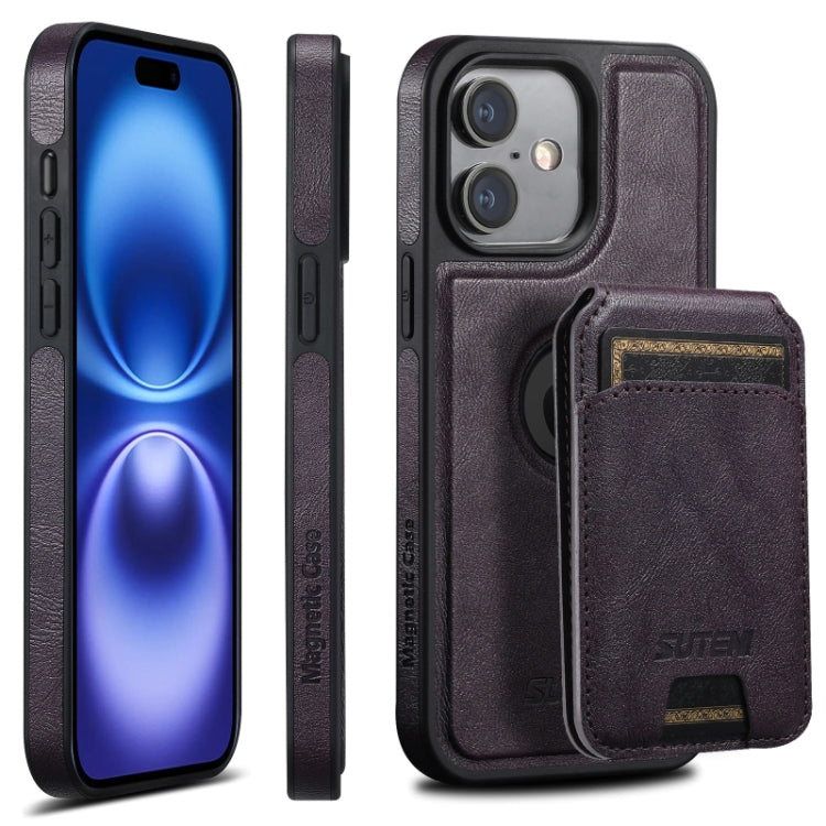 Funda para Teléfono Suteni M2 Oil Wax con Tarjetero Horizontal Magsafe para iPhone 16 (Morado)