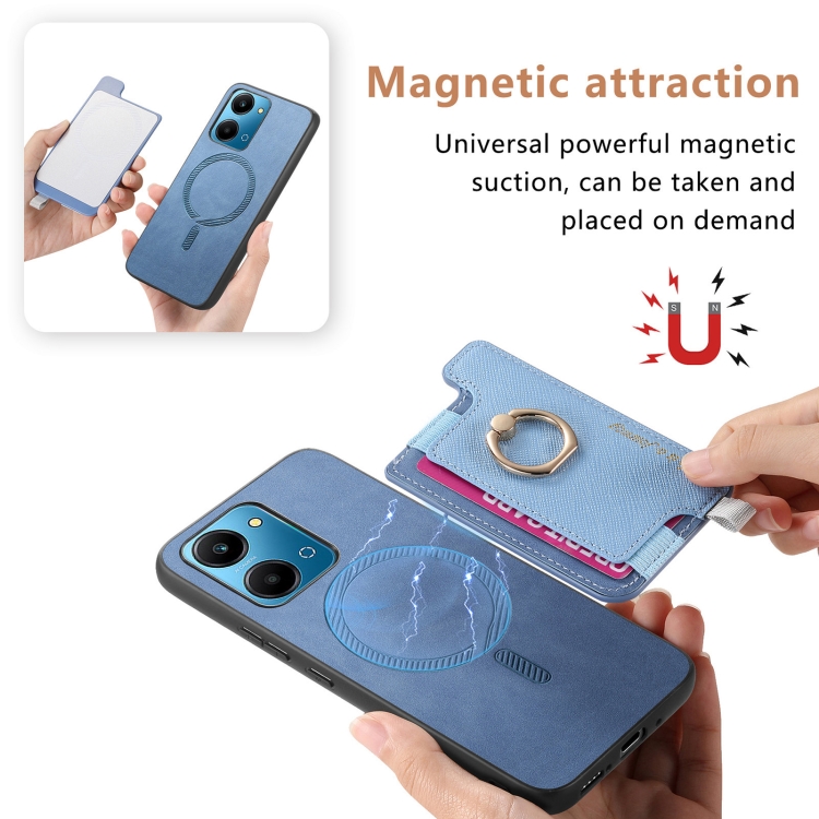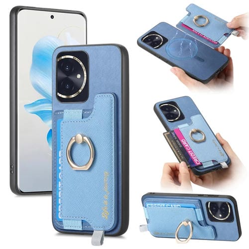Funda para Teléfono Honor 100 con Tarjetero y Anillo de Cuero Magsafe Cross (Azul)