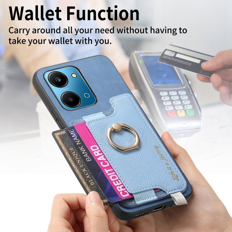 Funda para Teléfono con Tarjetero y Anillo Cuero Retro Magsafe Cross para Honor 90 GT 5G (Azul)