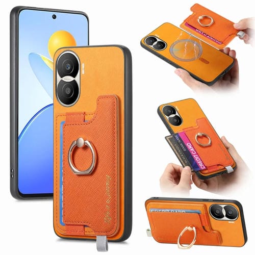 Funda para Teléfono Honor Play 7T/X7A con Tarjetero Anillo Cuero Diseño Retro (Amarillo)
