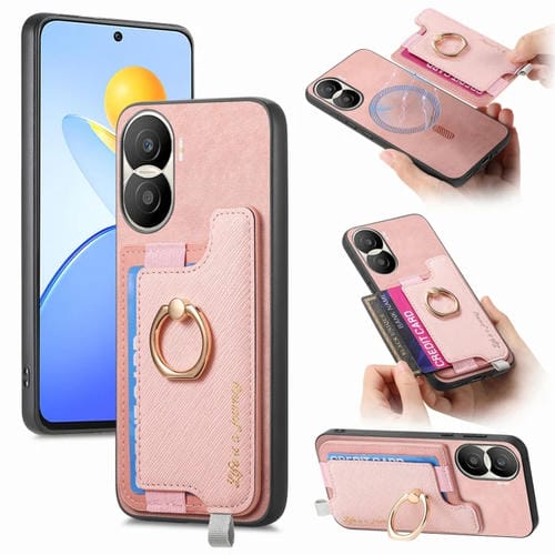 Funda para Teléfono Honor Play 7T/X7A con Tarjetero y Anillo de Cuero Retro (Rosa)