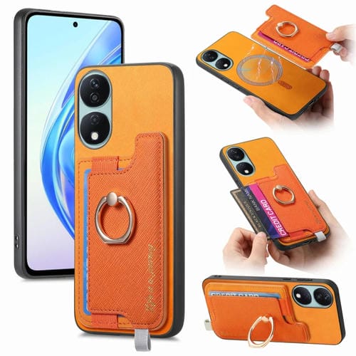 Funda para Teléfono con Tarjetero y Anillo de Cuero Retro Magsafe para Honor X7B/Play 8T 5G (Amarillo)