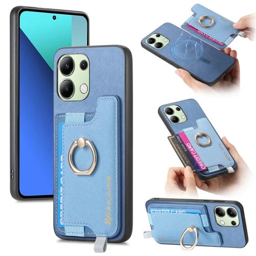 Funda para Teléfono con TaRJetero y Anillo de Cuero con Diseño Retro Magsafe para Xiaomi Redmi Note 13 4G (Azul)