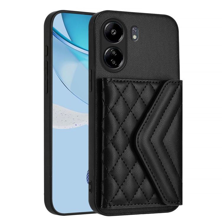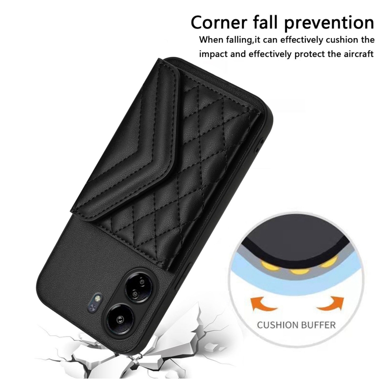 Funda para Teléfono con Textura Rómbica y Rfid para Redmi 13C 4G Global con Cordón Largo (Negro)