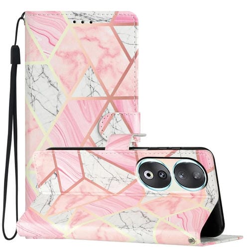Étui de téléphone en cuir de dessin coloré pour Honor 90 (marbre rose)