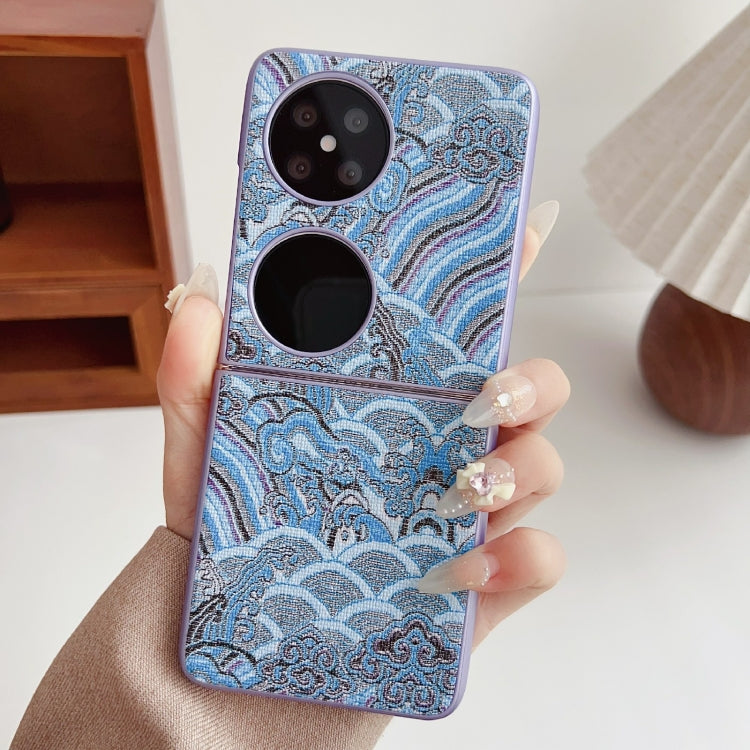Funda para Teléfono Huawei P50 Pocket con Bordado de Nubes y Cobertura Total (Azul)