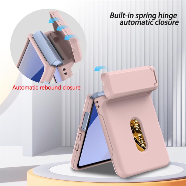 Funda plegable de PC con soporte y ranura para tarjeta y cadena de goma para Samsung Galaxy Z Flip7 5G (rosa)