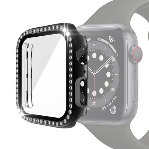 Funda Protectora Diamante Galvanoplastia con Vidrio Templado para Apple Watch Series 6 SE 5 4 44mm (Negro)