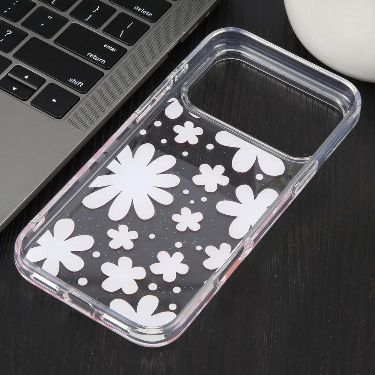 Funda transparente con diseño floral pequeño y purpurina para iPhone 17 Pro Max (margaritas rosas) de DFANS DESIGN