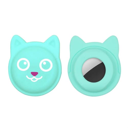 Hanhan Smiley Étui arrière en caoutchouc de silicone pour collier d'animal de compagnie mignon de dessin animé pour Airtag (vert esprit)