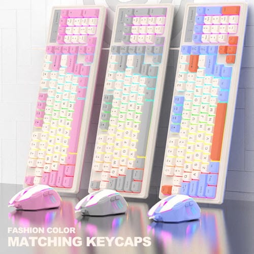 Teclado y Ratón K-Snake para Deportes Electrónicos con Cable Sensación Mecánica 98 Teclas para Computadora de Escritorio (Rosa)