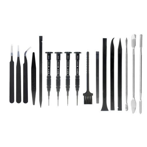 • Incluye 17 herramientas: pinzas (x3), palo capacitivo, palo puntiagudo, cepillo, spudgers (x4), espátula de Metal, destornilladores Torx 0.8, cruzado 1.5, de tres puntos 0.6 y de zócalo 2.5 mm