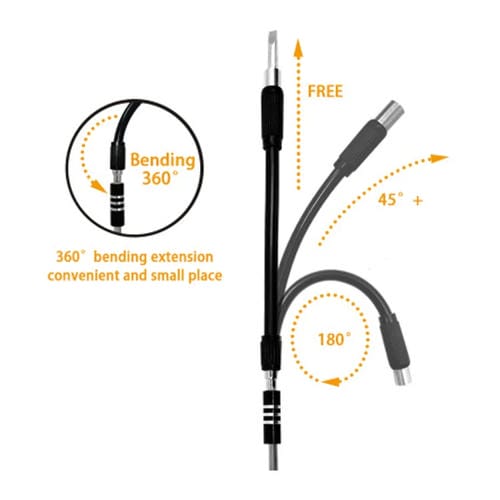 • Incluye 52 Piezas: manija, manguera múltiple, varilla de extensión con imán, magnetizador y 48 cabezales intercambiables; mango giratorio 360° y diseño antideslizante