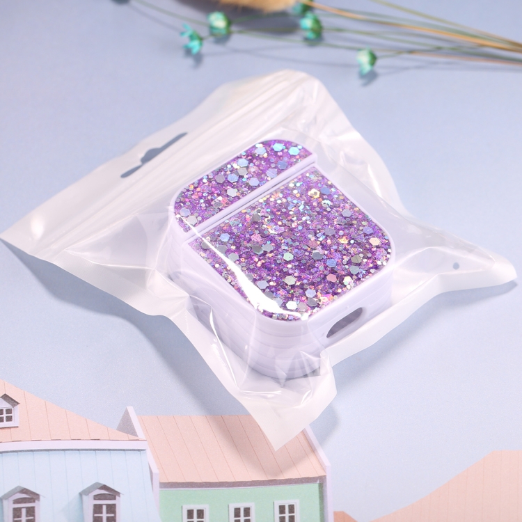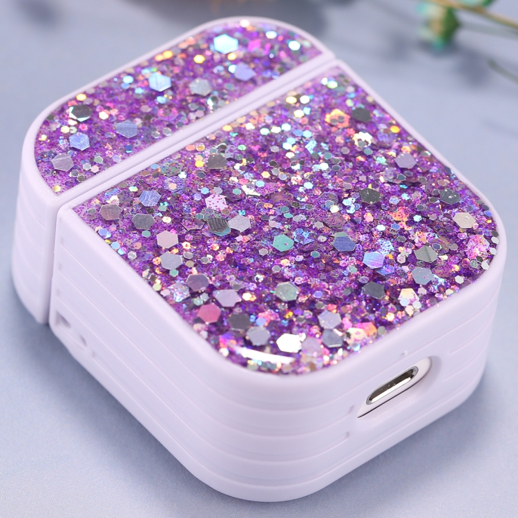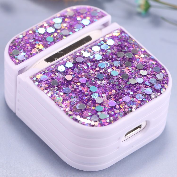 Funda Protectora para AirPods 1/2 Glitter Sequins para Auriculares Inalámbricos (Púrpura)
