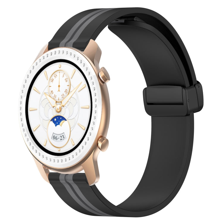 Correa de Silicona para Amazfit GTR 42mm 20mm con Cierre Magnético Plegable (Negro + Gris)
