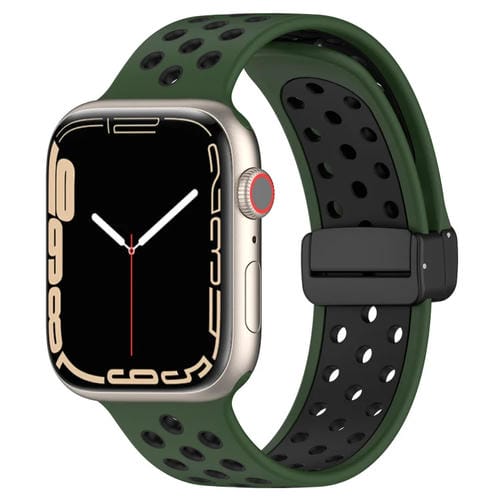 Correa de Silicona para Apple Watch 3 42mm con Hebilla Magnética (Verde Militar Negro)