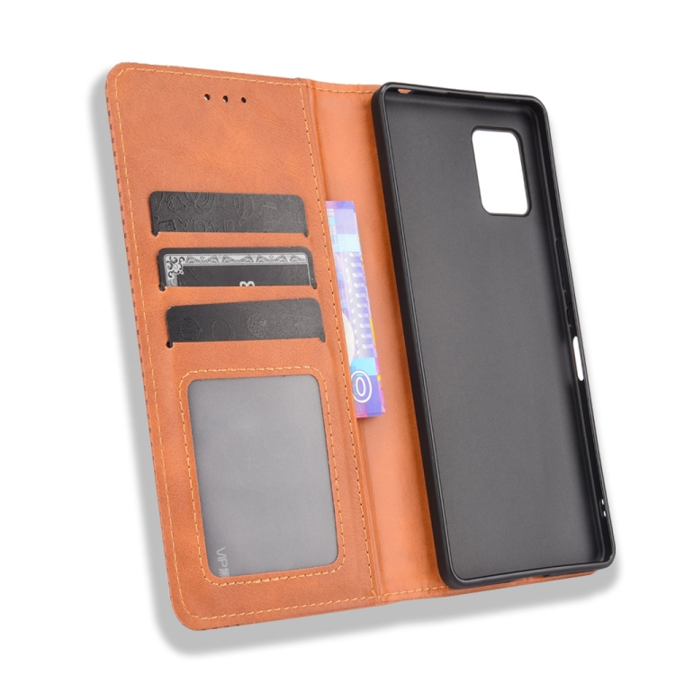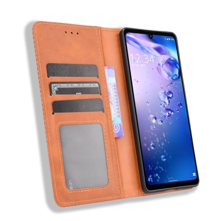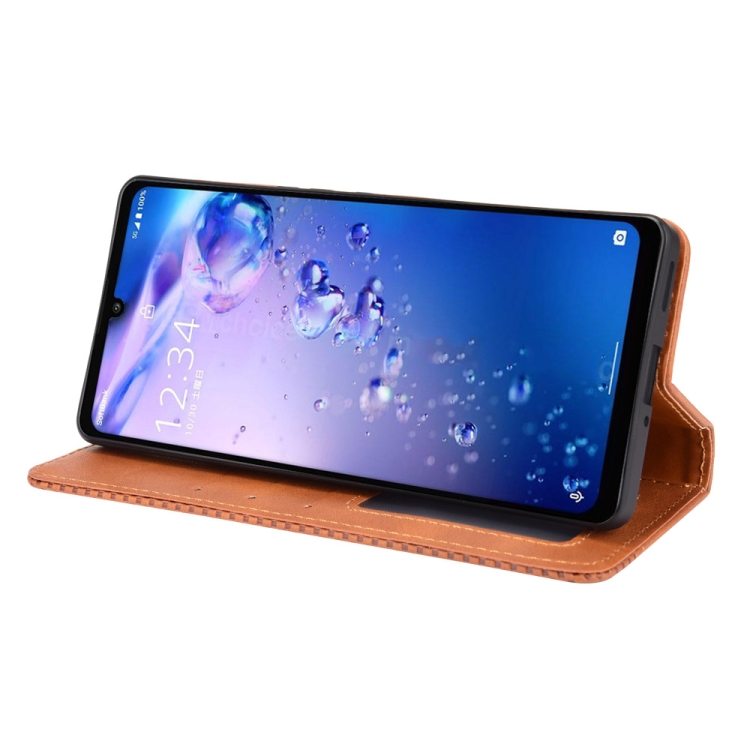 Funda de Cuero para Aquos Zero6 con Hebilla Magnética, Soporte, Ranuras y Marco de Fotos (Marrón)