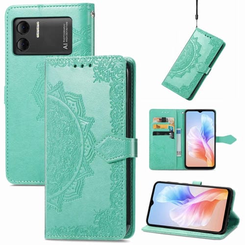 Funda de Cuero en Relieve Mandala Flower para Doogee X98 Pro / X98 (Verde)
