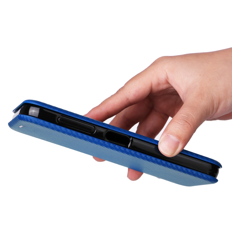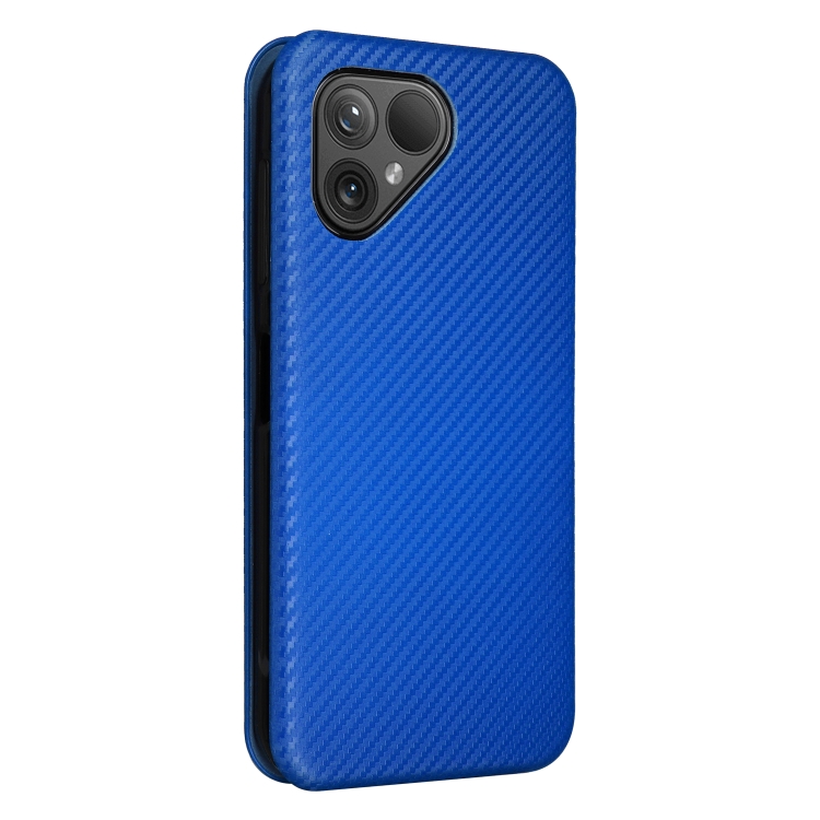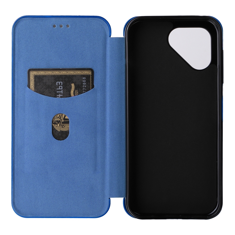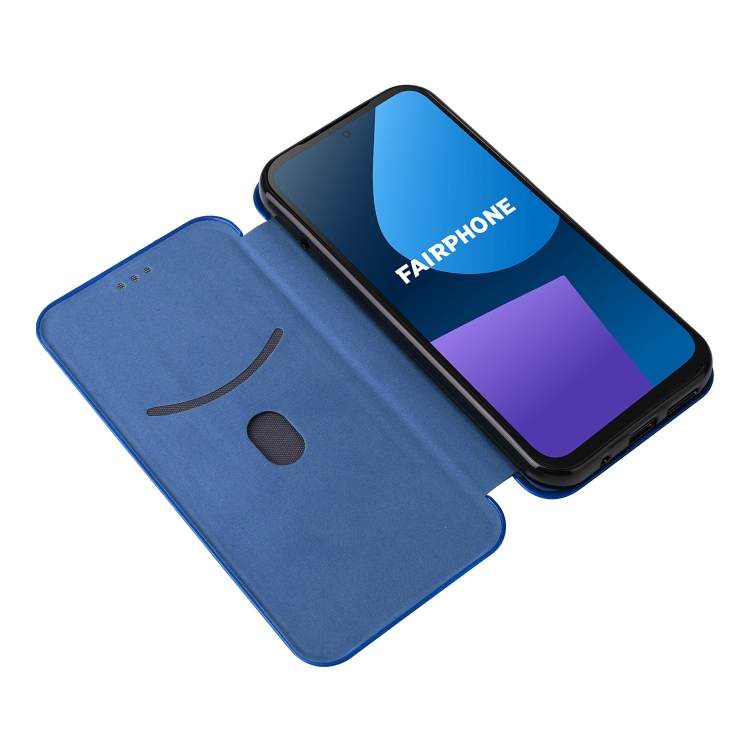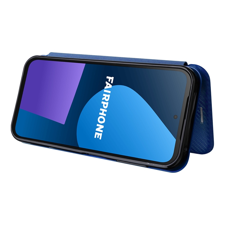 Funda de Cuero con Tapa para Fairphone 5 con Textura de Fibra de Carbono (Azul)