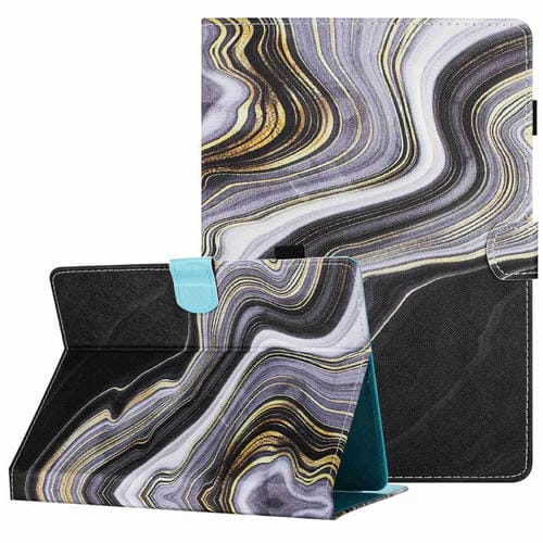 • 1x Funda para Tablet de Cuero con Costura y Patrón Mármol Universal 8 Pulgadas (Oro Negro)