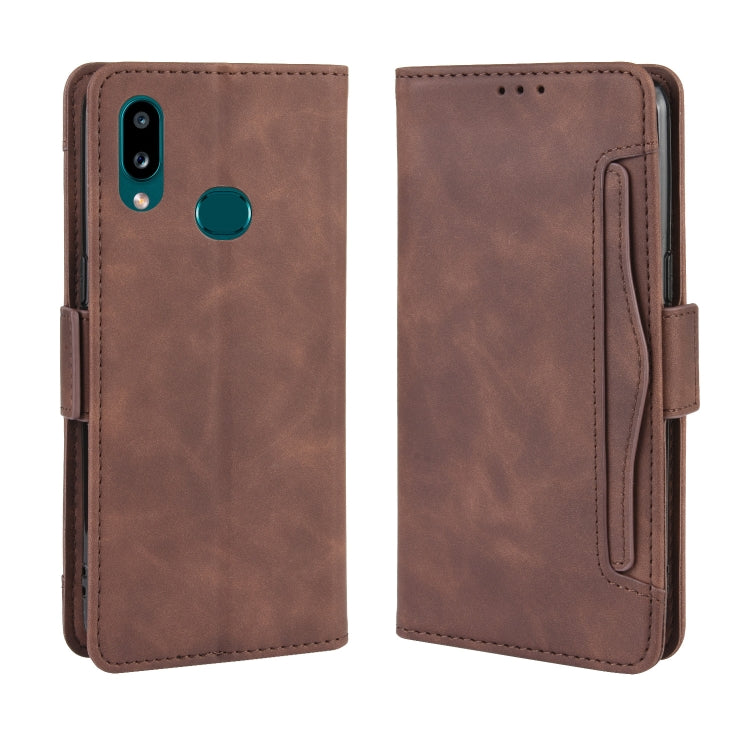 Estuche de Cuero para Galaxy A10S con Diseño de Pantorrilla y Ranura para Tarjeta Separada (Marrón)