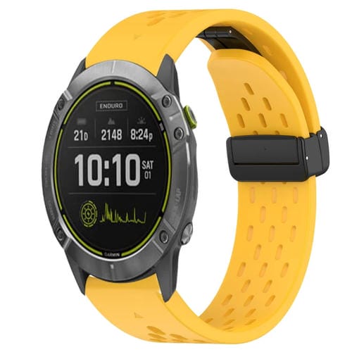 Correa de Reloj para Garmin Enduro de Silicona con Orificio y Hebilla Plegable de 26mm (Amarillo)