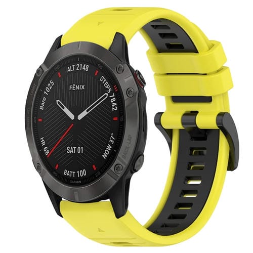 Correa para Garmin Fenix 6 Pro GPS 22mm Silicona Deportiva Bicolor (Amarillo + Negro)