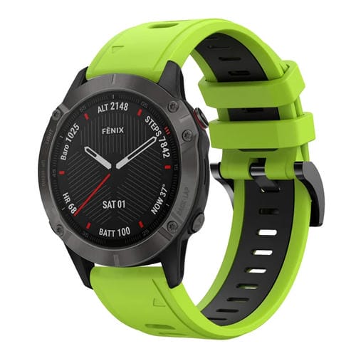 Banda de Reloj de Silicona Deportiva para Garmin Fenix 6 Sapphire GPS 22mm (Verde Lima + Negro)