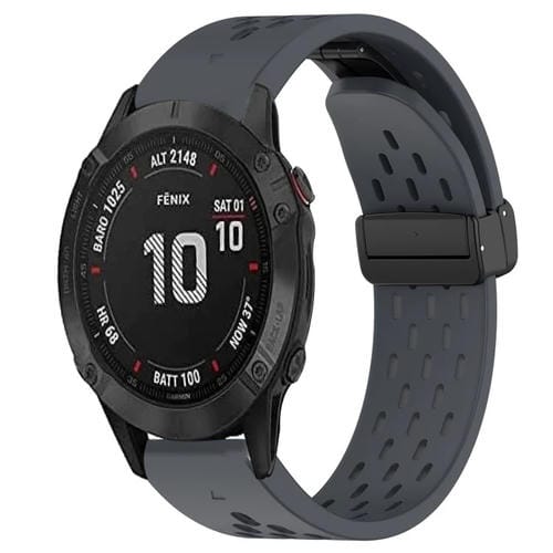 Correa de Silicona para Garmin Fenix 6S Pro con Orificio y Hebilla Plegable 20mm (Gris Oscuro)