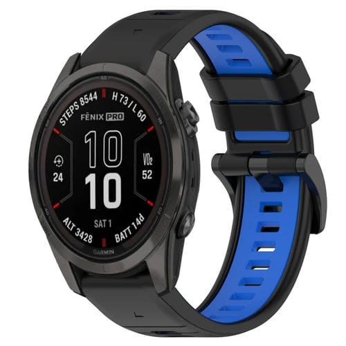 Correa deportiva silicona 20mm Garmin Fenix 7S (Negro + Azul)