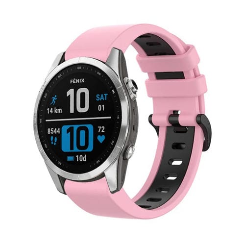 Correa de Silicona para Garmin Fenix 7S 22mm Sports Band Dos Colores (Rosa+Negro)