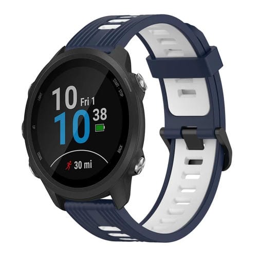 Banda de Reloj de Silicona para Garmin Forerunner 245 Música 20mm Patrón Vertical (Azul Oscuro+Blanco)