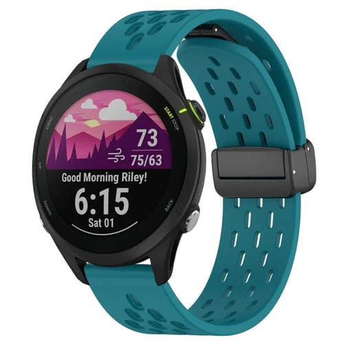 Correa de Silicona para Garmin Forerunner 255 Music con Cierre Magnético Plegable de 22mm (Verde Oculto)